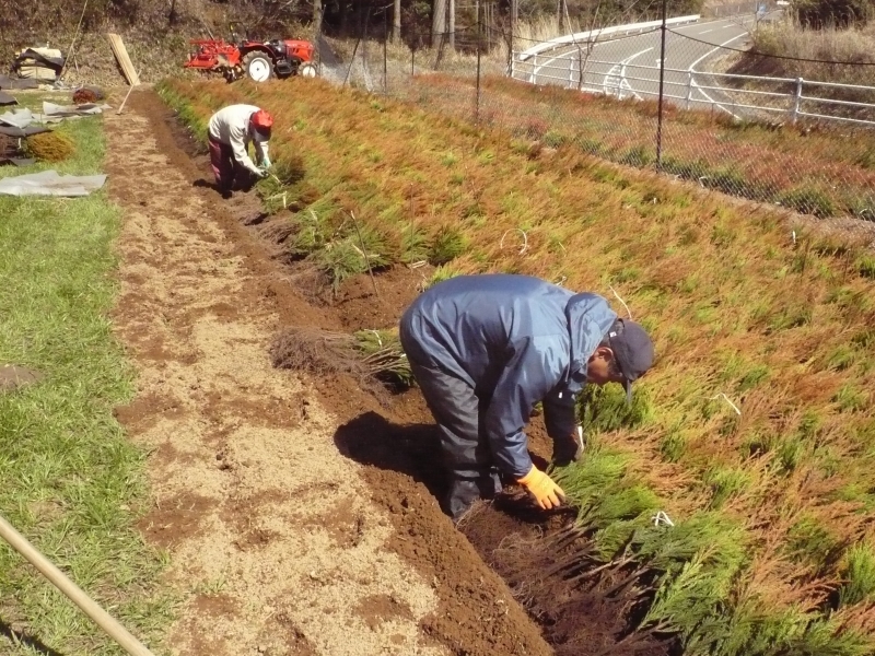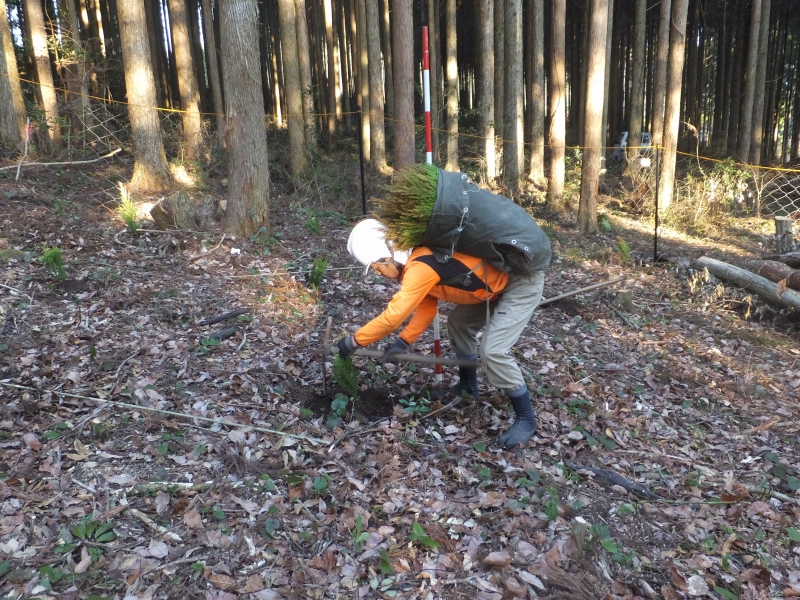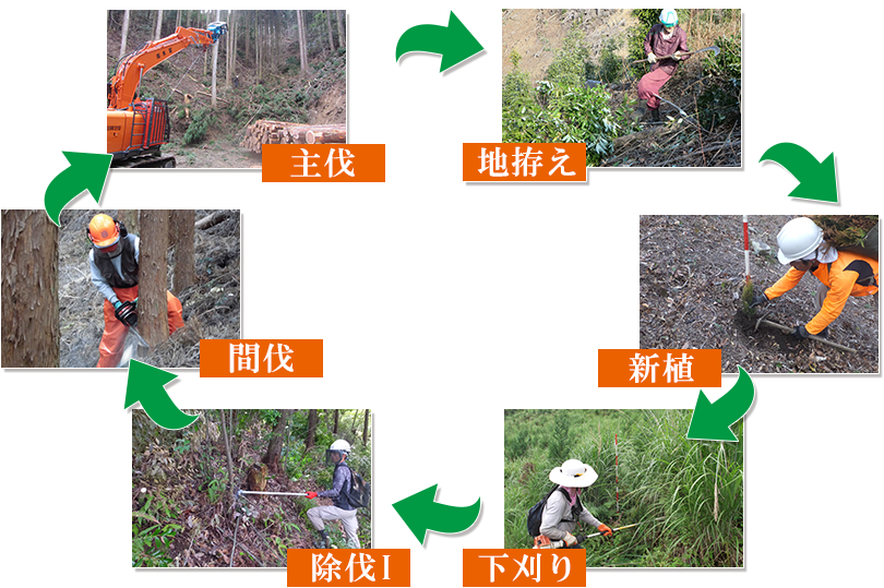 健やかな森林を築くため、植栽、保育、伐採を計画的に行い